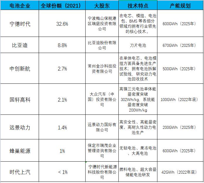动力电池产业一超多强