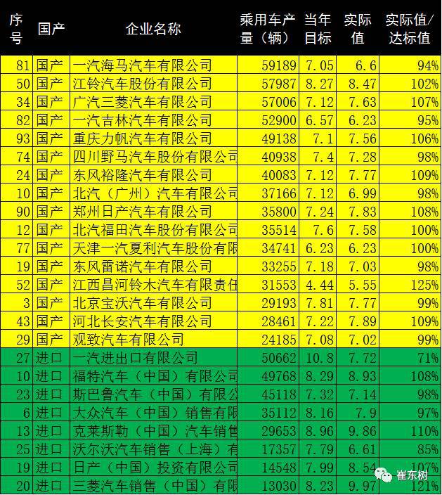 汽车行业分析师崔东树对于年销3至5万辆区间的国产和进口车企进行了梳理,大概有24家之多,他们也将进入到购买或生产电动车积分的焦虑中来。