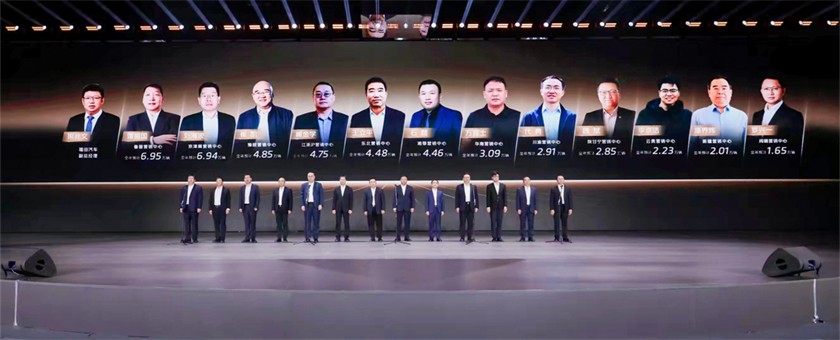 大会伊始,13位事业部总裁与13位区域营销中心负责人(含12位中心总经理及分管领导)集体亮相,展现了福田“主力作战部队+战区支援中心”的矩阵式作战体系。
