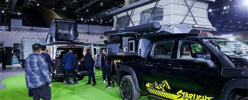 改装生活展区的图雅诺旅居车、火星系列皮卡,融合越野性能与生活化配置,拓展商用车应用边界;