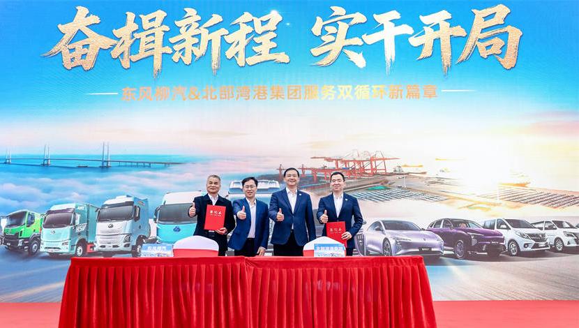 2026年2月28日,钦州港潮涌风劲、实干潮起,“奋楫新程 实干开局——东风柳汽&北部湾港集团服务双循环新篇章”主题活动在此圆满举行。在“十五五”规划开局之年、全国两会召开前夕的关键节点,东风柳汽与北部湾港集团两大广西本土国企正式签署战略合作协议,以港口车船齐鸣的独特形式发出实干奋进的强音,通过新品发布、生态共建、智能作业展示等一系列举措,勾勒出“汽车智造+港口物流”协同服务以国内大循环为主体、国内国际双循环相互促进的新发展格局的清晰图景。此次活动因鲜明的时代主题、扎实的实干导向,受到新华网等权威媒体高度关注,充分展现了广西国企的担当与作为。