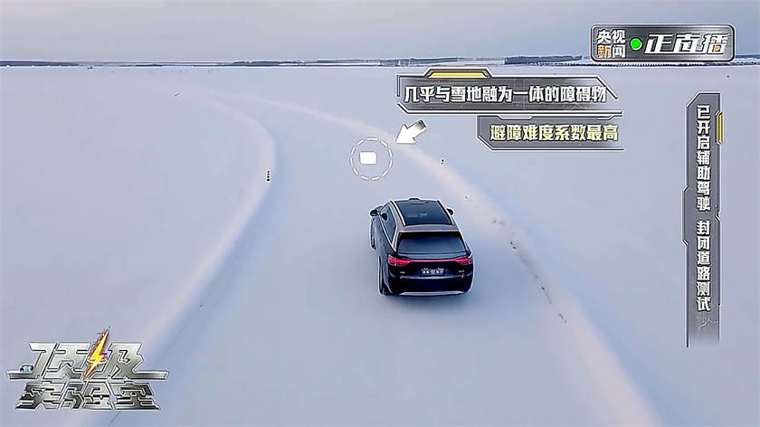 在复杂雪地道路辅助驾驶挑战中,测试团队在无清晰道路标识的雪面道路上,设置了模拟施工路段、违停车占道、弯道障碍物、乡村限宽路和低矮障碍物多场景考验,低矮障碍物更是选用了与雪同色的30cm白色泡沫箱。凭借着优秀的全维感知、拟人化的决策及途灵平台的深度协同,问界M9带来精准识别、丝滑避障与平稳舒适的全场景辅助驾驶体验,极大增强了用户在冬季复杂路况下的驾驶信心。