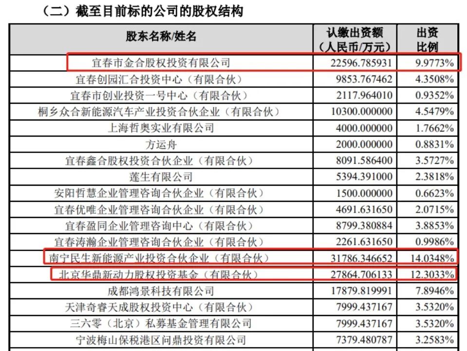 截至三六零此次公告披露,哪吒汽车的股权非常分散。最大的三个持股方为代表宜春国资、南宁国资和四川国资的宜春金合、南宁民生新能源产投和北京华鼎新动力,而代表创始人团队的桐乡众合、上海哲奥实业加上创始人方运舟合计持股仅7.2%。