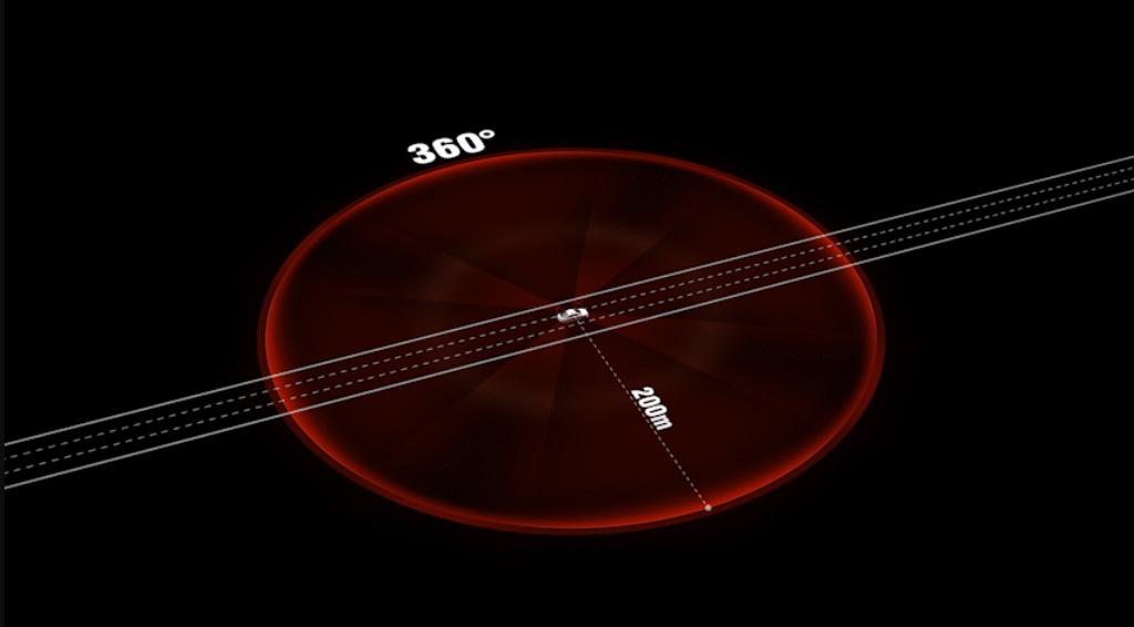 △ 360°水平范围智能感知,感知半径200米