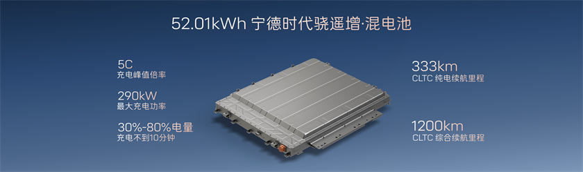 性能上,昆仑增程系统保障全工况动力输出,全球首发增程电子机油泵与活塞主动控制技术有效降低噪音。纯电版续航达333km,支持5C超充,搭载宁德时代骁遥增混电池,体积能量密度超440Wh/L。
