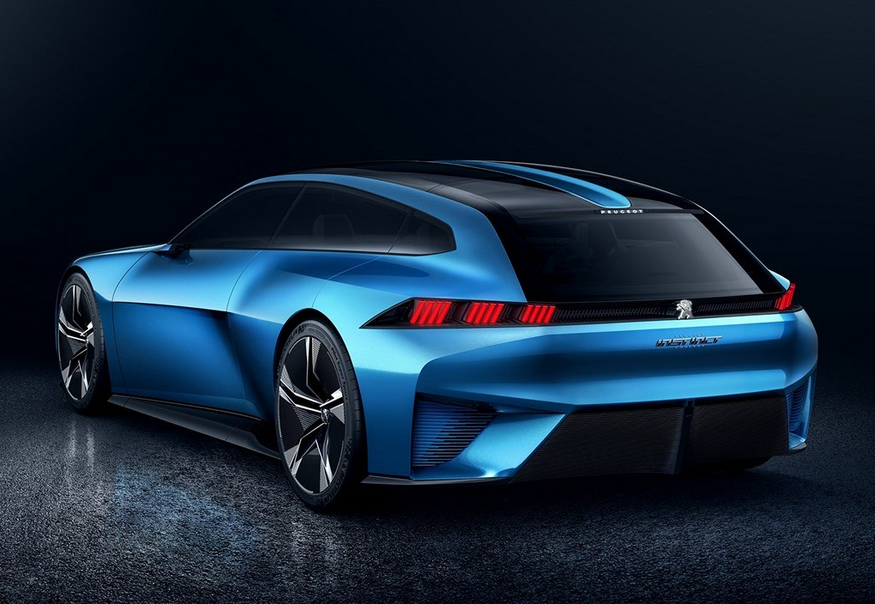 标致Instinct概念车搭载的是能输出300马力的插电式混合动力系统,Hossann指出在设计猎装版时主要聚焦于效率和空气动力学。
