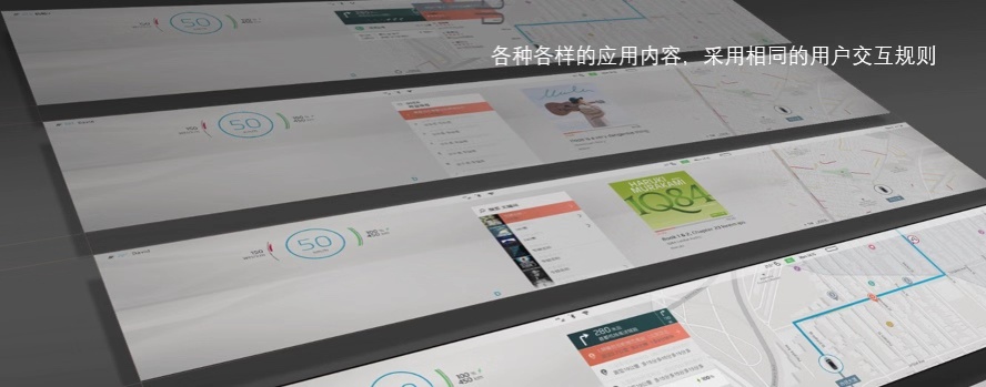 导航、天气和音乐这些不同应用的界面设计不同,有的是图标,有的是文字,有的是列表,开车时如果先后操作需要一一适应。