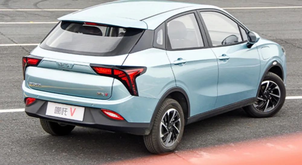 哪吒V外观延续了哪吒汽车的设计语言,整体风格主打年轻、时尚。前脸采用封闭式进气格栅,车侧应用熏黑式喷涂,营造出悬浮式车顶的视觉效果。同样具有特色的还有新车溜背式车身造型与“战戈”状LED尾灯,进一步提升年轻、运动的气息。