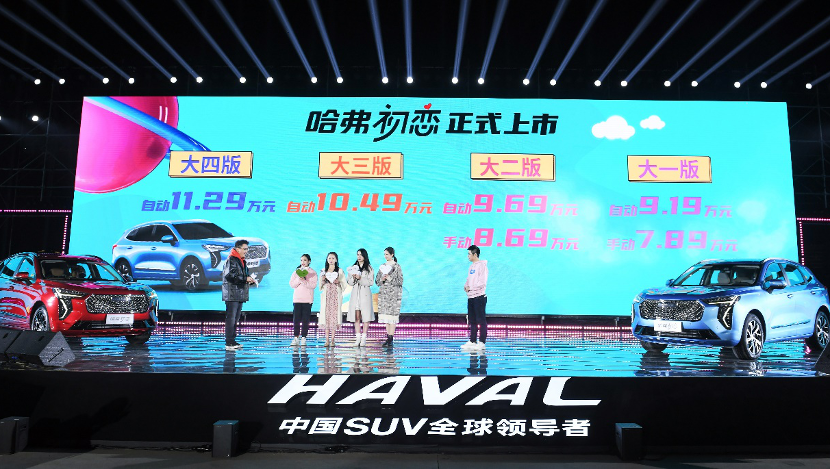 1月11日,在厦门举办的哈弗品牌初恋之夜活动上,哈弗初恋压轴登台,以7.89—11.29万元的价格心动上市。