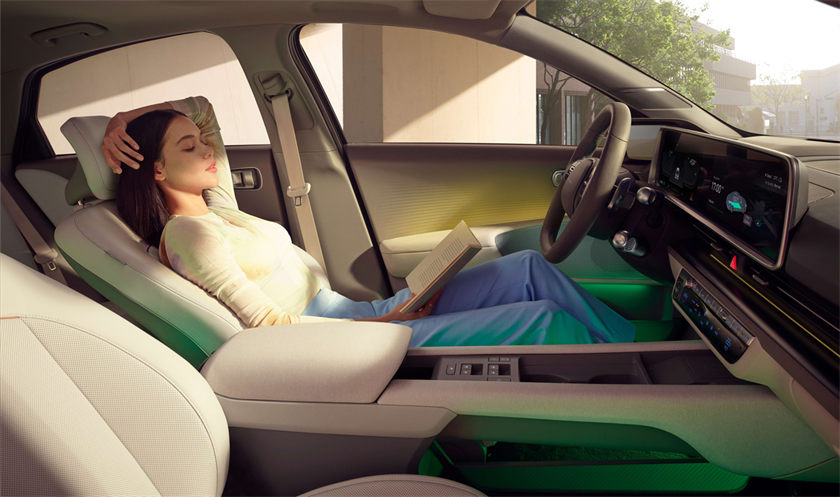 内饰方面,IONIQ(艾尼氪) 6设计了茧形的私人空间,并采用最新科技营造出安全舒适的驾乘体验。以可持续性和实用性为核心打造的宽敞内部空间。驾驶员可以选择64种颜色的双色氛围灯和6个预选主题,同时车内照明亮度可根据车辆速度随时进行变换,增强驾驶乐趣。另外,所有座椅均是现代汽车专为纯电动车型打造,相比其他传统车型约薄30%,为用户提供了更宽敞的乘坐空间。车辆内部配备的4个Type-C接口和1个USB接口极大提高了使用的便利性。