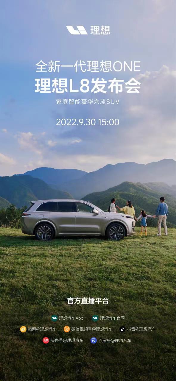 9月21日,智驾网从官方获悉,全新一代理想ONE即理想L8发布会将于2022年9月30日15:00正式开始,价格公布后即开启大定。国庆期间,理想L8展车将陆续到达全国各地的理想汽车零售中心供用户体验,11月初正式开启交付。