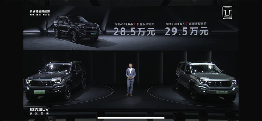 8月25日,坦克品牌基于Hi4-T架构打造的第二款车型坦克400 Hi4-T正式预售,其中机能版预售价28.5万元,超能版预售价29.5万元,预售期下订可获赠首任非营运车主终身免费基础保养、专属户外机能套装等权益。