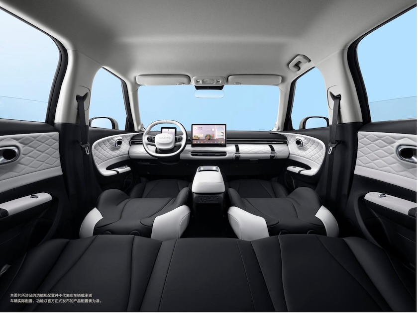 纳米01的长宽高为4030/1810/1570mm,轴距则达到2660mm,“得房率”高达66.7%。纳米01前排座椅支持180°放平,原创抽屉式副驾岛台设计,抽拉后秒变化妆台和办公桌。除上述收纳空间外,纳米01拥有可拓展式大容量后备厢,后排放倒后可扩展至945L。