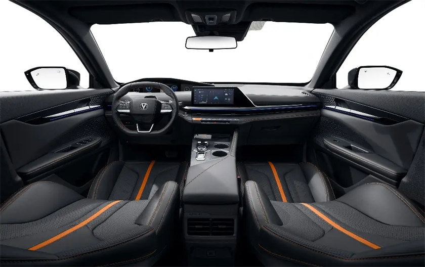内饰的变化较小,依旧采用黑色主色调+橙色点缀,新车搭载莫比乌斯3+1全视战斗仪表,眼动10度即可查看重要行车信息。新车座舱内置语音助手“小安”具备多轮对话、上下文识别、跨场景识别等强大语言理解能力,犹如一位挚友时刻陪伴左右。通过DMS/IMS智能座舱交互系统的Face ID人脸识别,用户上车时“刷脸”就能启动车辆