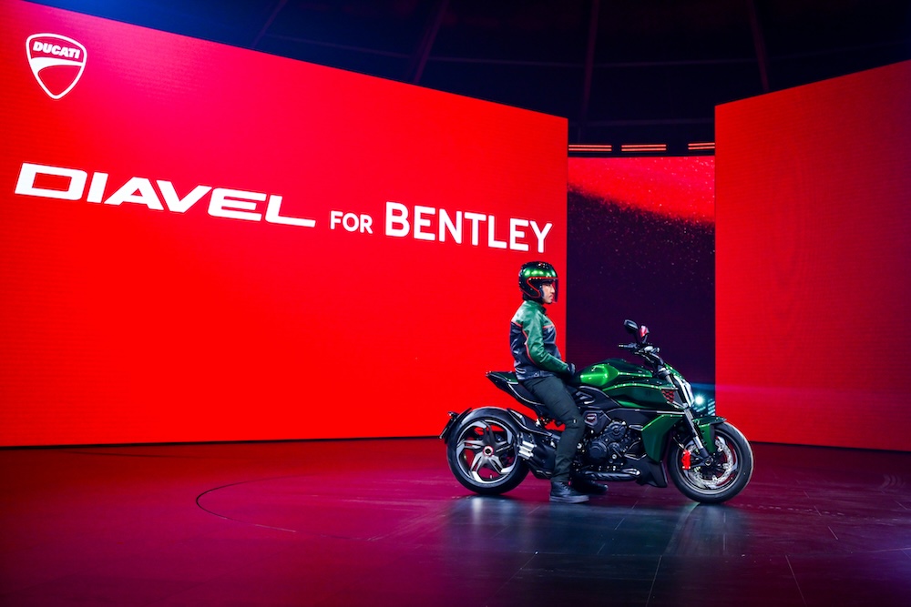 杜卡迪 Diavel for Bentley 限量版摩托车拥有全新的设计以及独特而精致的部件和特殊的专属涂装,并且融合了Bentley Batur的风格元素。