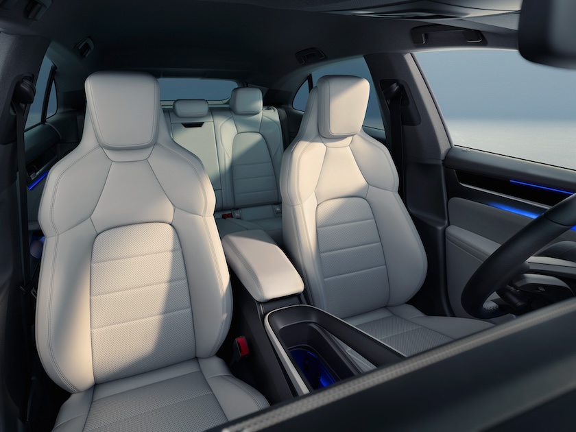 全新纯电动Macan采用最新一代显示和操作理念,全系标配包括悬浮式12.6英寸曲面组合仪表和10.9英寸中央显示屏。在车辆行驶过程中,副驾乘客也能通过10.9英寸乘客显示屏查看信息、调节信息娱乐系统设置或观看流媒体视频。在纯电动Macan上,保时捷驾驶舱体验还首次配备采用增强现实技术的抬头显示系统,在视觉上将导航箭头等虚拟元素与现实世界无缝衔接,显示大小相当于87英寸的显示屏。此外,还搭载了兼具功能性的场景氛围灯,其能够根据不同的场景传递信息或发出警告,例如:迎宾问候和充电过程,还能与驾驶辅助系统协同工作。