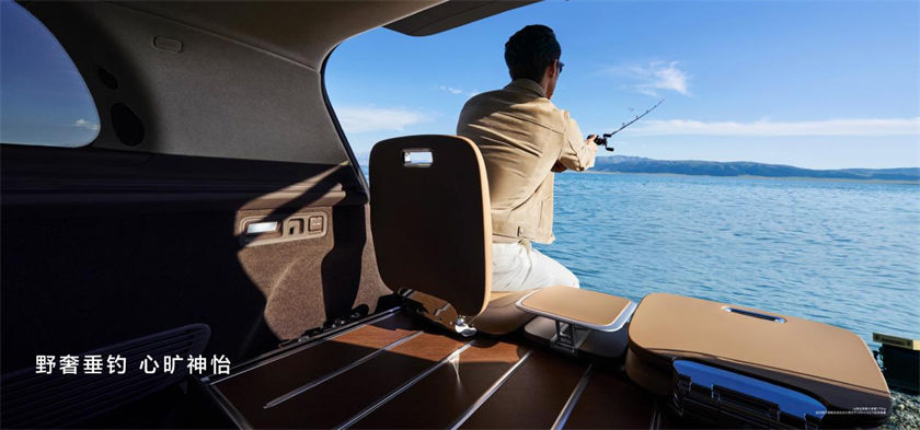 问界M9大五座副驾座椅可一键折叠放平,配合二排座椅展开,打造双奢合璧的总统空间;双人沙滩椅模式配合投影巨幕系统,形成舒适观影厅。每种形态都能做到将舒适性与空间感和谐统一,完美契合用户的多元用车场景。