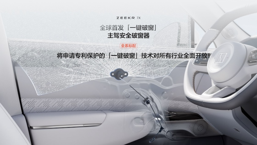 而一键破窗器是标配在极氪7X主驾门板下方储物槽顶部的装置,在意外发生时可通过触发可真正实现毫秒级破窗逃生,即使在水中断电时也可通过全机械触发方式快速逃生。极氪还将这项专利技术向全行业免费开放,让更多用户在紧急情况下获得保护。