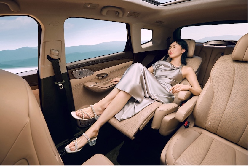 除了座椅通风、加热、10点SPA级按摩功能,第二排还设有便捷的多功能扶手,轻松实现“躺平”模式,配合15.6英寸超清悬浮大屏、SONY沉浸式8扬声器以及62英寸超大星空天窗,驾乘人员可静享旅途中的宁静与愉悦。