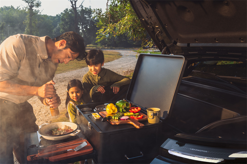 细节便利配置同样拉满,全车设计50处储物空间与12处取电口,满足全家出行需求;176升220V超宽电动前备舱支持防泼可冲洗与拓展配件组合,可秒变露营料理舱或观景露台。