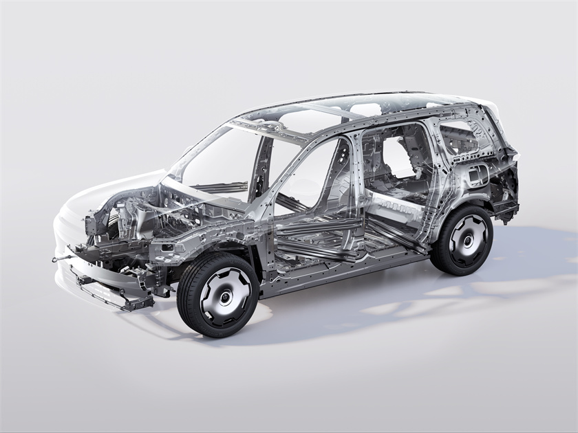 安全是一切体验的基石,零跑D19基于行业顶级安全标准开发。车身采用“九横三纵四连环”笼式结构,16处关键部位应用2000MPa热成型钢,A柱创新采用 “回形五重钢”加强设计,“目”字型铝合金前防撞梁宽度占比超80%,厚度达5mm,有效抵御碰撞冲击。一体式压铸技术的应用提升了车身刚性与整体性,高强钢与铝合金占比高达83%,兼顾安全与轻量化。