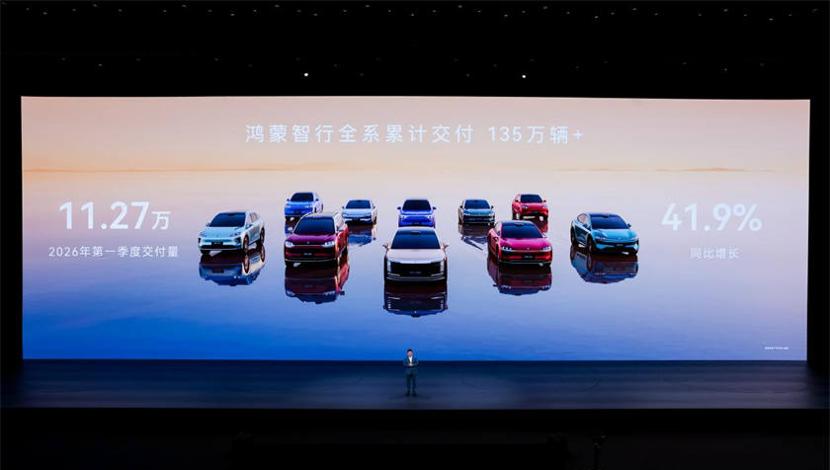 鸿蒙智行携手赛力斯、奇瑞、北汽、上汽、江淮多家合作伙伴,打造AITO问界、LUXEED智界、STELATO享界、MAEXTRO尊界、SAIC尚界产品矩阵,累计交付突破135万辆,2026年一季度交付11.27万辆,同比增长41.9%。鸿蒙智行预计2026年底布局2459家以上销售门店、1459家以上服务门店,覆盖全国94%以上城市,接入超200万根充电枪。