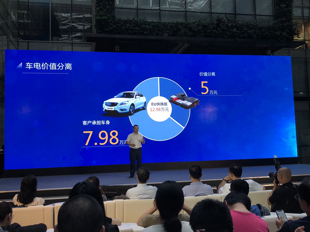 这意味着,消费者的购车成本中将不必包含蓄电池的价格,这正是北汽新能源EU快换版可以做到只有7.98万元的原因。