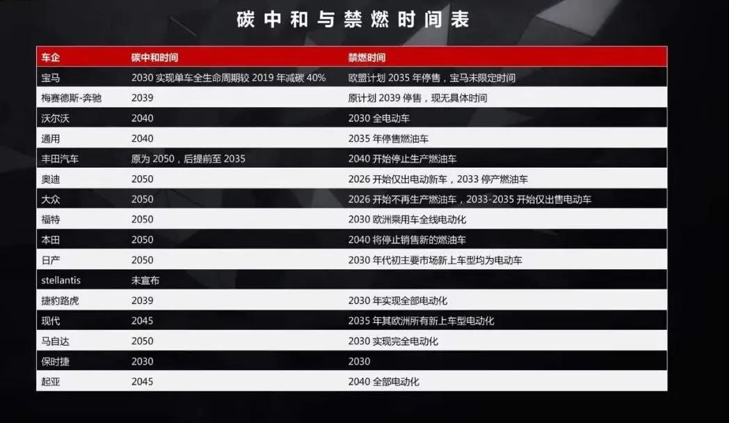 而碳中和和全面电动化推动的世界主流车企发布了自我禁燃令。