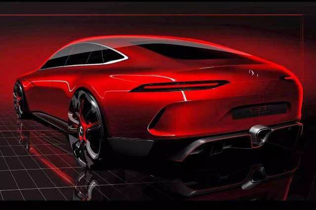 梅赛德斯-AMG GT概念车灵感来源于现款AMG GT Coupe和第一代CLS级车型,采用了超薄头灯设计和三维立体尾灯。
