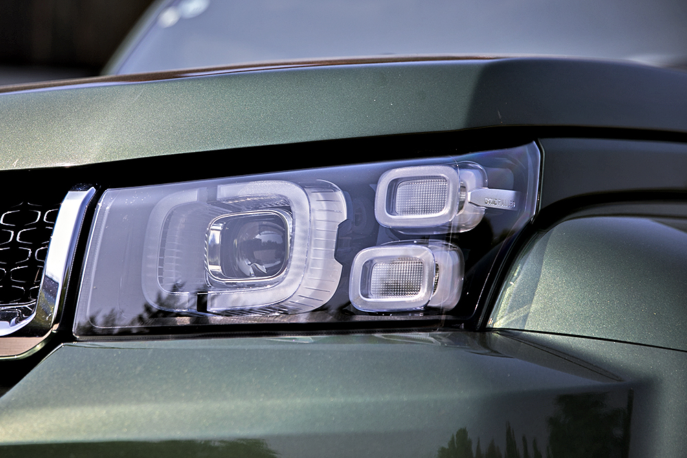 除了敦实之外车头看上去也很精致,这主要是因为镀铬装饰以及细节变化,“五孔”家族中网没有变化,但是前大灯因为采用了圆角矩形所以更加漂亮,LED光源的出现也让照射更加明亮,不过因为LED日行灯的位置比较低,所以在越野的时候要更加注意一下。