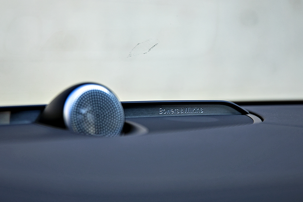 Bowers/Wilkins音响系统拥有最著名“哥特堡音乐厅”效果,立体声强度和环绕感均可调节。尤其是高音扬声器置顶(tweeter-on-top)技术的中央扬声器,可减少挡风玻璃反射声,从而将空间感与临场感提升。