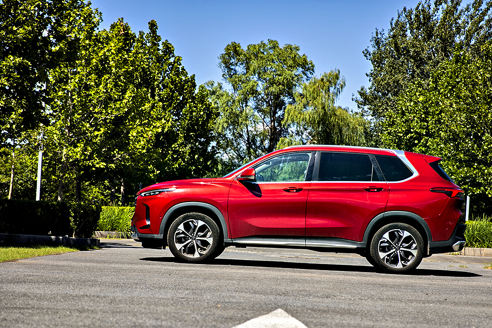 侧面线条最个性的设计是行李架与侧窗装饰条相结合,看上去颇有创意。配置方面,这台车配有前排无钥匙进入、后排私密玻璃等。