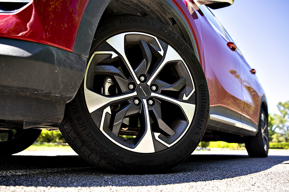 19英寸双色轮辋可以说是“吸睛神器”造型非常漂亮,轮胎选用马牌UitraContact UC6 SUV系列轮胎,尺寸为:235/50 R19英寸。