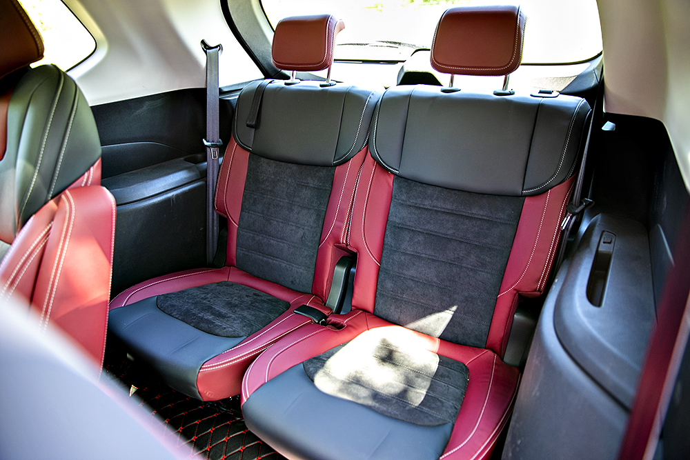 座椅层面有五座、六座以及七座可以选择,这台车是六座版本,整车采用皮革+Alcantara材质包覆,前排座椅包裹性较高,并配有加热功能。