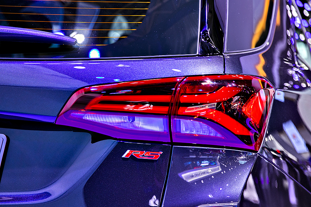 因为这台车是RS版,所以多边形中网内部采用蜂窝装饰,再配合“黑领结”+“RS”的车标,给人一种强烈的视觉冲击,当然这些设计也都是RS版独有的。