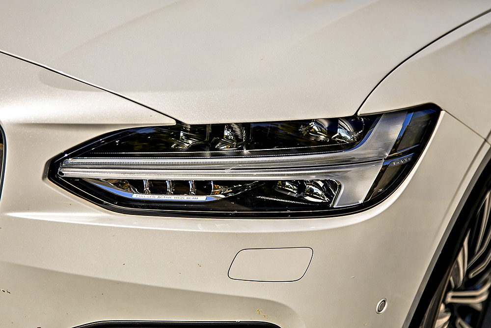 2021款S90 智雅豪华版(以下简称:2021款S90)因为是中期改款产品,所以外观设计并没有进行大刀阔斧的改变,整车依然走“简约”风格,车头最大的变化是保险杠下部增加了一圈镀铬装饰条,看上去更豪华一些。