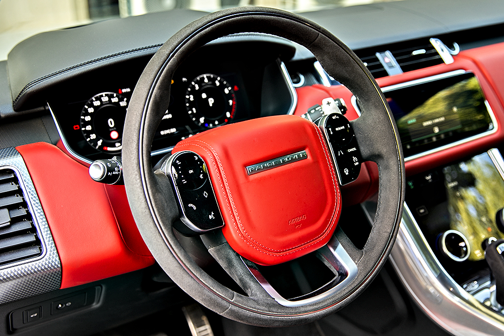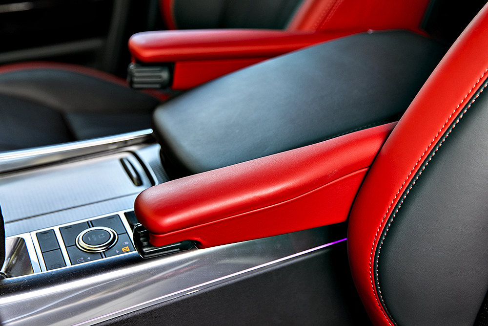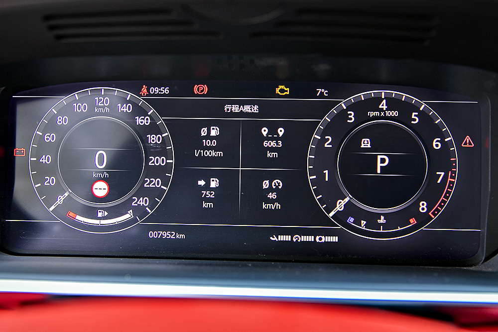 路虎揽胜在车辆配置方面都有非常多的选配项目,智驾君(ID:zhinengqiche)强烈建议各位尽可能选装一台属于自己的爱车,这点比德系品牌要强不少。这台车内饰采用了非常“张扬”的黑红配色,智驾君(ID:zhinengqiche)个人还是比较喜欢白黑配色的内饰,看上去更加清晰一些,但是这种就是仁者见仁智者见智的事情了。
