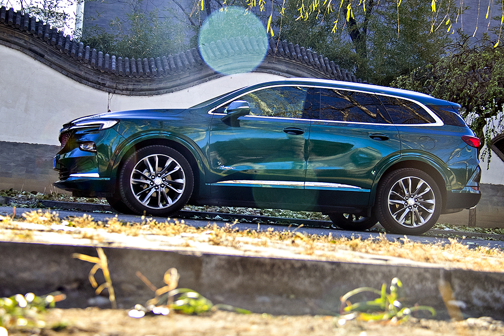 定位中大型SUV的昂科旗侧面线条非常规整,没有多余且浮夸的装饰,简单的镀铬装饰营造的氛围就是沉稳和内敛,当然在前门板下方还有非常低调的“Avenir”字样,彰显其尊贵身份。