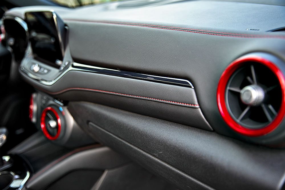 开拓者尽管是一台合资国产车型,但是内饰整体设计依旧延续了海外版,“RS”版本的内饰主要以黑色为主并辅以红色缝线搭配,除此之外还用了不少细节进行点缀,比如在空调出风口、以及挡杆上都采用了红色装饰。整体的用料也符合雪佛兰的一贯水准。虽然谈不上豪华,但也让你挑不出太大的毛病。