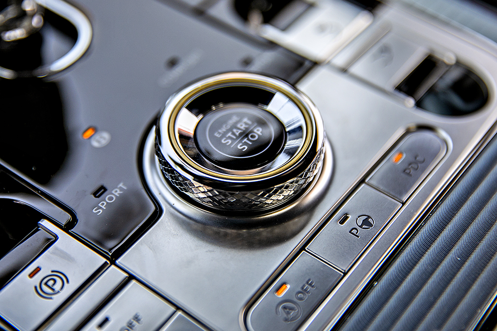 “一键启动”饰面采用非常精密处理,灵感源自瑞士自动机械表表面,官方称之为“日内瓦波纹”,这个技术同样是首次应有在汽车产品上,在厚度仅有0.6毫米的铝片上从一侧到另一侧加工线形图案。每行纹路仅有5毫米宽,在一定角度下,形成真正的三维表面效果。