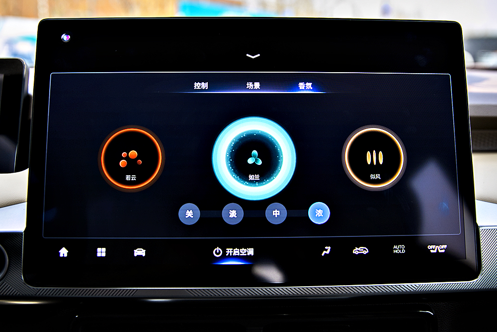 空调操作面板布局简单,今天北京温度大约22°左右,车内冷风一档,大约5分钟左右,后排已经感觉到有些凉了,不仅空调凉风迅速,而且AION Y还提供了三种不同香氛。