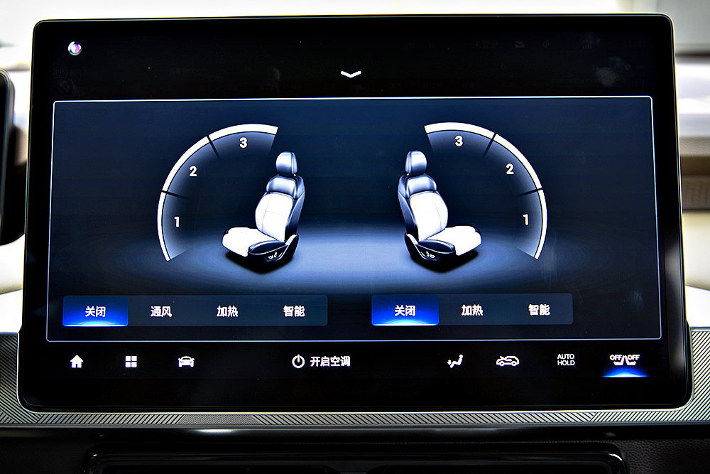 当然整车还有三个物理按键,分别为:空调自动模式、双闪、后窗除雾。在三个物理按键后方则是巨大的无线充电面板,为何说巨大呢,因为常规手机放上去还有很大的余量,而且位置高低很合适,不会造成拿取手机影响驾驶的情况出现。