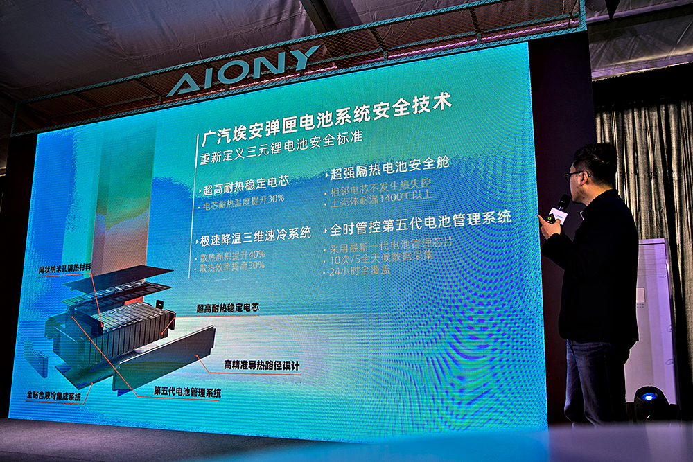 在动力驾驶以及电池层面,AION Y最大的关注度就是配置了弹匣电池。整个电池包是将电池置于形似弹匣的安全舱内,从电芯材料、电池结构、冷却系统和电池管理四个系统来提升电池安全性。