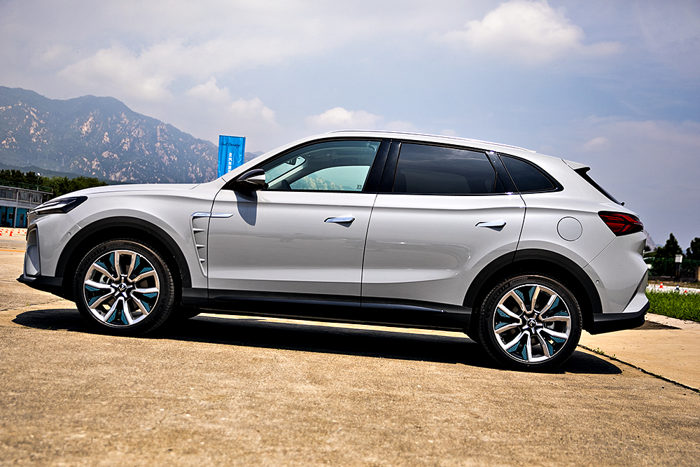 整车侧面线条处理很巧妙,腰线并非直线,而是通过一条曲线勾勒出动感效果,非常惊艳且大胆的设计。隐藏式门把手以及翼子板神似燃油车的“鲨鱼鳃散热孔”,也都表现了不一样的视觉效果。