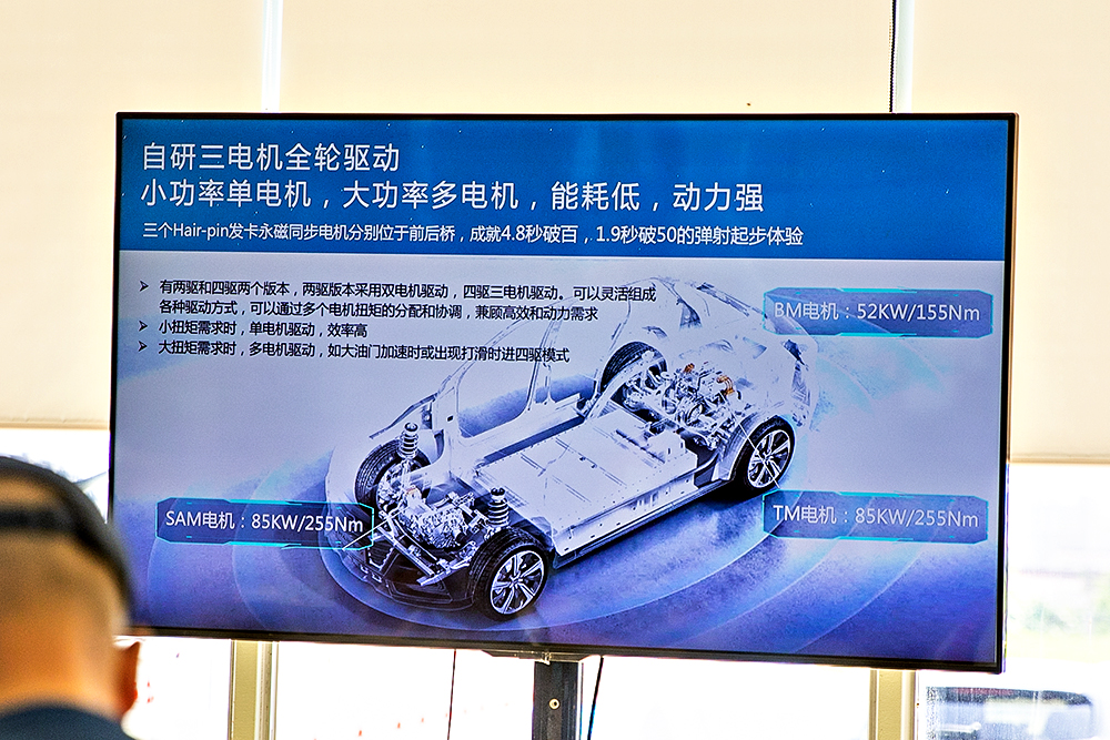 电动车的加速不需要任何担心,只要您舍得踩下加速踏板,在80km/h以下时速进行加速、超车,那是相当杠杠滴。整车还提供了三种驾驶模式,因为场地限制,所以跟大家简单聊聊。