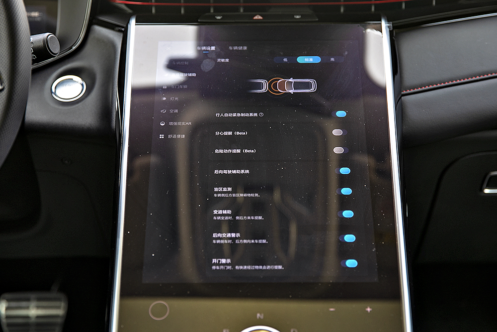 动能回收同样有三个档位可调,最高挡位下可以明显感觉到拖拽感很强,中挡位拖拽力度适中,也可以很好的配合加速踏板,既做到了能量回收也不会让乘客“左摇右晃”,而低档位下基本没有任何回收拖拽,无限接近燃油车。