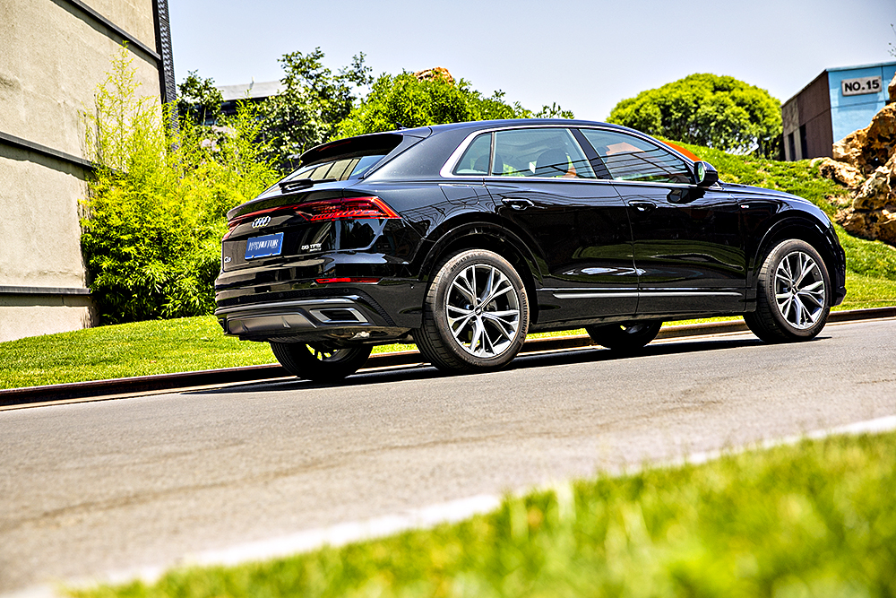 轿跑SUV最迷人的无疑就是侧面线条,但看到Q8你会发现它的车顶在尾部下滑并不厉害,这就会让后排头顶空间更加宽裕,当然如果您想进一步提升侧面线条感,个人建议选装行李架。