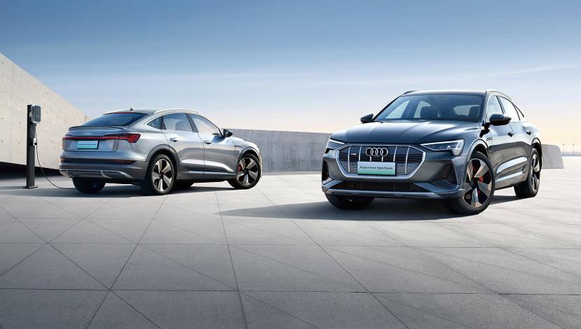一汽-奥迪e-tron Sportbanck,外观方面,新车前脸和奥迪e-tron没有太多差别,多边形格栅+直瀑式中网都是e-tron家族的经典设计元素。新车相较于e-tron最大的变化在于车侧,背部线条更加圆润,末端下坠更加明显,呈现轿跑SUV的姿态。