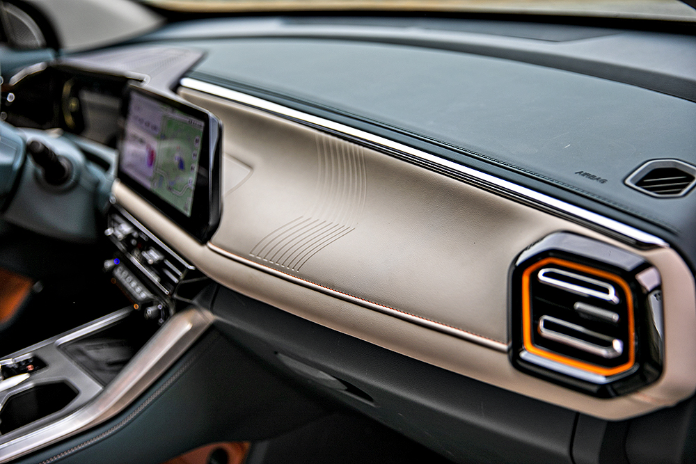 尽管没有使用贯穿连屏,但是这种错落有致的屏幕组合,同样很有新意。全液晶仪表没啥可惊艳的,但是整个UI设计很到位,画质细腻。