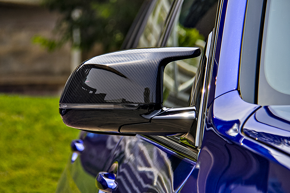 因为是M版本,所以在车身细节上也有诸多“M”标识,比如中网、前翼子板、碳纤维后视镜罩等等。